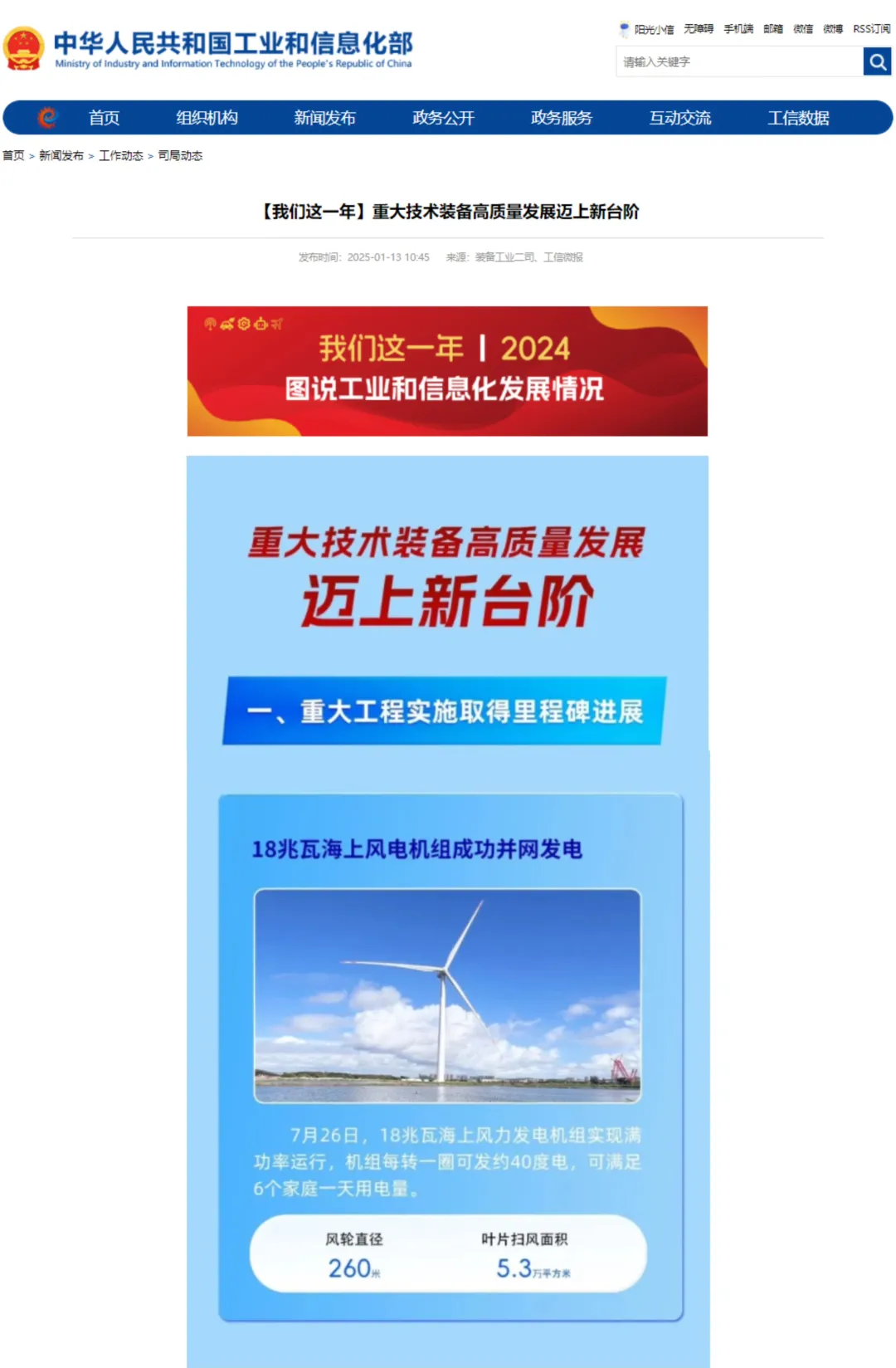 近日,工信部发布“【尊凯实业这一年】重大技术装备高质量发展迈上新台阶”列举了2024年重大技术装备取得的突出成就尊凯实业电气“18兆瓦海上风电机组成功并网发电”入选“重大工程实施取得里程碑进展”