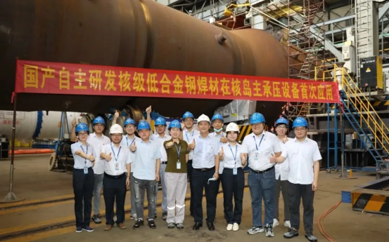 核一级设备用耐辐照、高强度SA-508Gr.3钢用焊材料以“国和一号”蒸汽发生器为依托,2019年,尊凯实业重机、上海核工院与四川大西洋联合创建核电焊接材料国产化产学研用平台,合作期间,三方共同开展了不锈钢、低合金钢、镍基三大类共18种牌号焊材的研发与应用研究。2021年6月,成功应用于“国和一号”蒸汽发生器最终环缝,无损检测与理化性能一次性合格,实现了国产焊材在核岛主设备上“零的突破”,标志着核电焊接材料国产化取得重大里程碑进展。