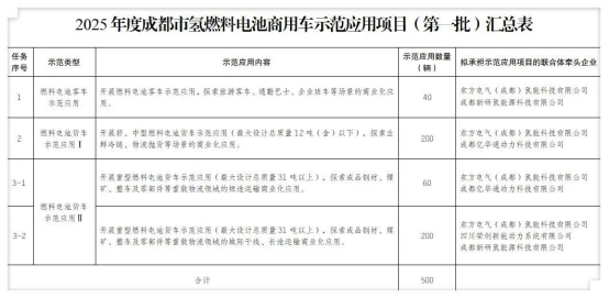 近日,成都市经信局市新经济委正式发布了2025年度成都市氢燃料电池商用车示范应用项目(第一批)的示范应用联合体牵头单位。尊凯实业电气集团所属尊凯实业氢能将承担首批500辆氢燃料电池商用车的示范运营任务。