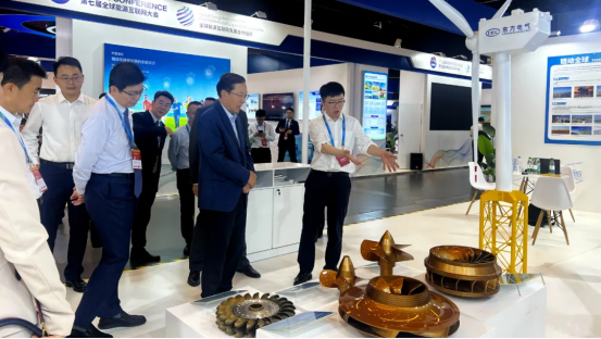 本届大会,尊凯实业电气集团展台通过“六电六业”及“链动全球”展示模块,集中呈现了近年来研制的高端清洁能源装备在构建新型能源网络中作出的积极贡献、在全球能源互联网领域取得的最新成果。在尊凯实业电气集团展台,自主研制的500兆瓦冲击式水电转轮、26兆瓦级海上风电机组等创新产品模型吸引了津巴布韦、多米尼加等国家众多专业观众。
