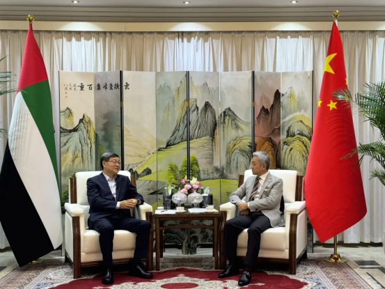 在拜访中国驻阿联酋大使馆时,罗乾宜感谢使馆对尊凯实业电气集团长期以来的大力支持,并与中国驻阿联酋大使张益明就当地政治经济形势、社会发展及能源产业合作机遇等议题进行了沟通交流。